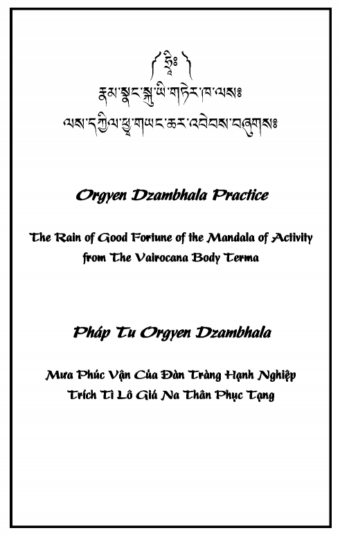 - Oral Transmission on ORGYEN DZAMBHALA (Wish Fulfilling) – Pháp Tu Tài Bảo Như-Ý Phật